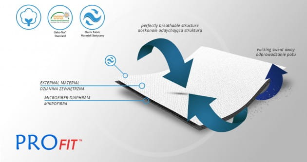 Polecany przez nasz sklep ortopedyczny online kołnierz szyjny miękki typu Schanza, wykonany z odpowiednio dobranej pianki poliuretanowej oraz dzianiny ProFit. Jest to dwuwarstwowa dzianina, która doskonale dopasowuje się do ciała pacjenta, rozciąga się we wszystkich kierunkach doskonale modelując kształt kończyny – tworzy tzw. drugą skórę. Zewnętrzna warstwa ze spandexu odpowiada za właściwą kompresję i dopasowanie wyrobu, redukuje drganie mięśni powstające w trakcie wysiłku fizycznego. Wewnętrzna membrana z mikrofibry, bawełny i elastanu odpowiada za utrzymanie właściwego klimatu przy skórze oraz odprowadzanie potu, jej struktura gwarantuje aksamitną miękkość w dotyku.