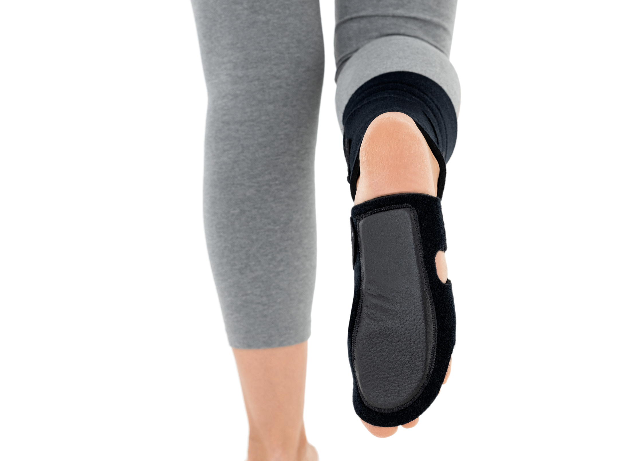 Elastyczne pasy kompresyjne zapewniają płynną regulację kąta ustawienia zgięcia grzbietowego stopy w zakresie 45°–135°. Orteza umożliwia utrzymanie pozycji stawu skokowego w kącie prostym, stopniowo unosząc przodostopie, ułatwiając tym samym swobodny chód i rozciągając tkanki podeszwowe i ścięgno Achillesa. Unoszenie palców zapobiega suwaniu stopą o podłoże, co jest kluczowe w terapii opadającej stopy.