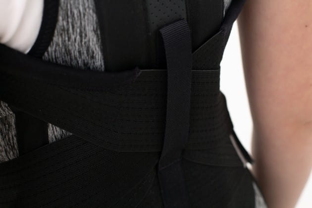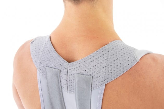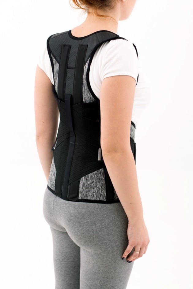 Konstrukcja ortezy i specjalistyczne podpaszki pełnią rolę prostotrzymacza, który wymusza na użytkowniczce utrzymanie prawidłowej postawy ciała i zapobiega zaokrąglaniu pleców. To z kolei, „uwalnia” klatkę piersiową i zapewnia prawidłową pracę układu oddechowo-krążeniowego.