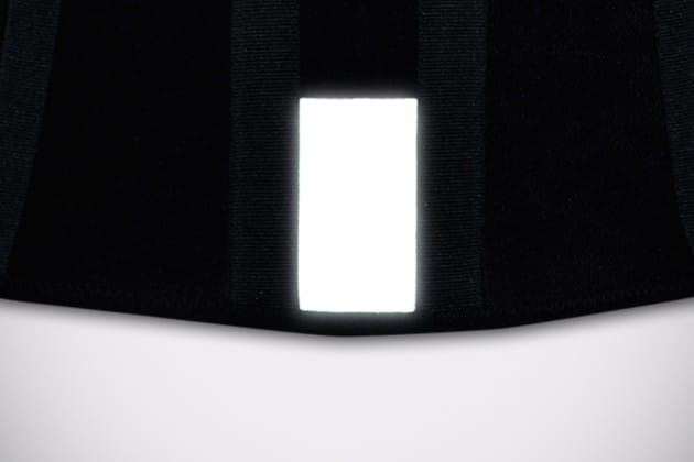 W tylnej części ortezy zamontowano element odblaskowy, który wystając spod kurtki motocyklowej zwieksza bezpieczeństwo kierowcy.
