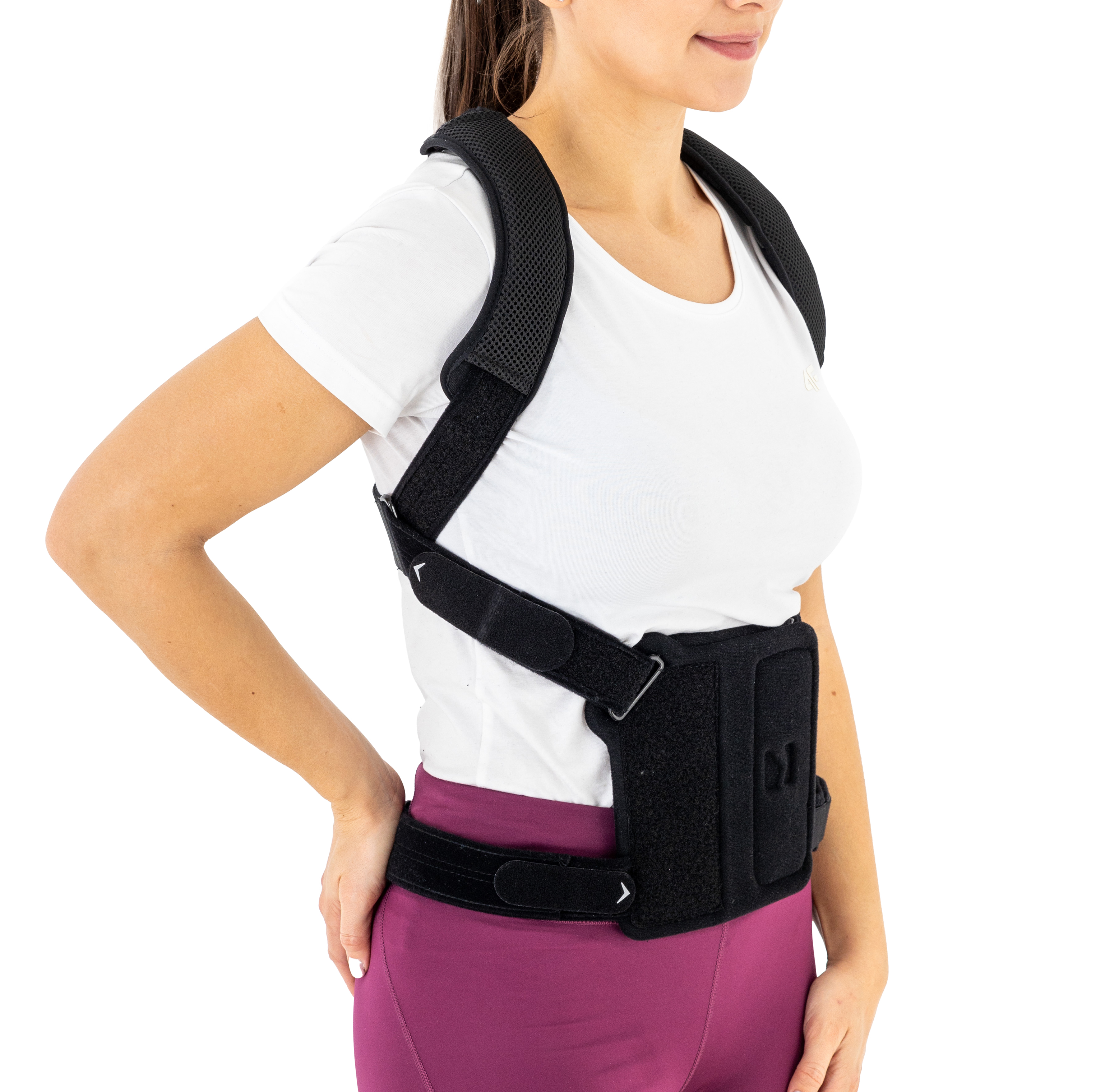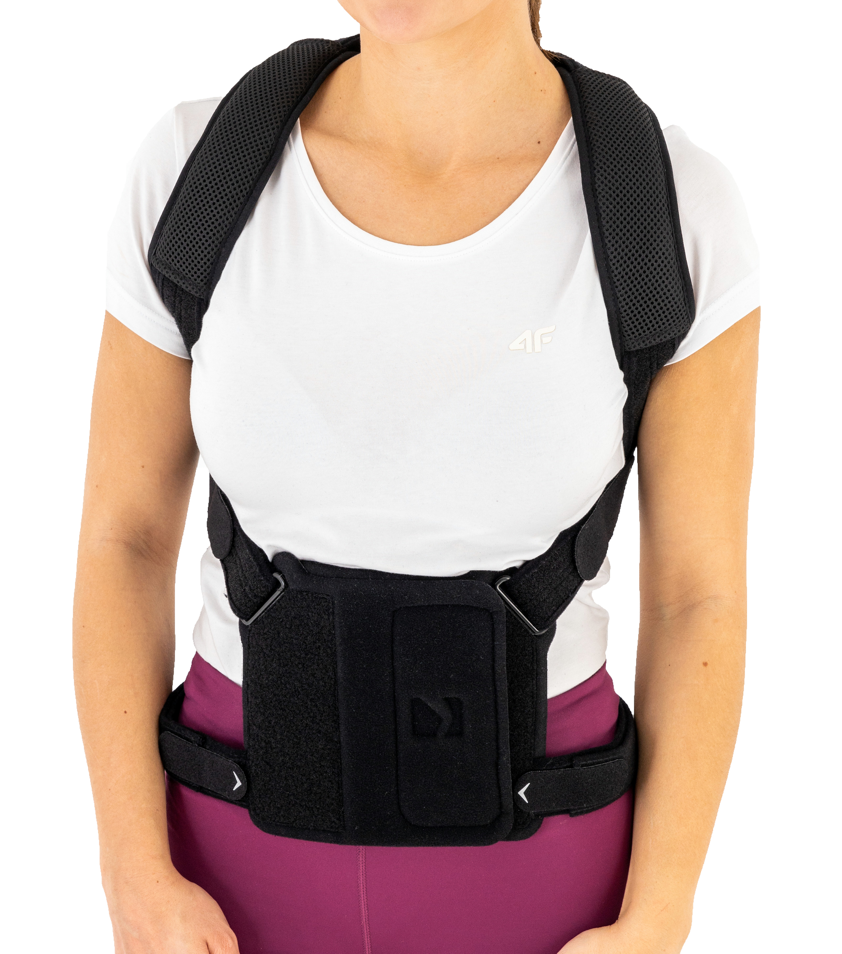 Dzięki zaawansowanej konstrukcji, orteza pleców AM-PES-08 aktywuje mięśnie w rejonie kręgosłupa oraz pionizuje jego górną część poprzez wzmocnienie siły mięśni i zmniejszenie kifozy związanej z osteoporozą. Takie rozwiązanie zapobiega progresji osteoporozy, niweluje ryzyko złamań kompresyjnych kręgosłupa, zmniejsza ból i zdecydowanie poprawia jakość życia codziennego użytkownika.