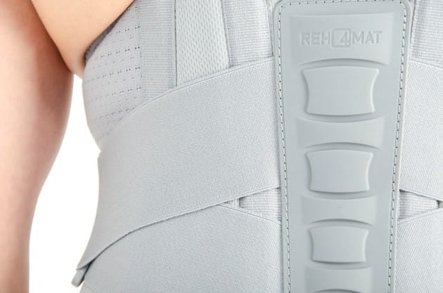 Tylna część ortezy została wykonana z nowego innowacyjnego surowca AirSanmed. Specyfika tego surowca polega na tym, że nie jest on elastyczny przez co polepsza stabilizację w odcinku lędźwiowym. Przy skórze pacjenta znajduje się przewiewna bawełniana dzianina frotte, wewnątrz półsztywna perforowana pianka komfortowa, na zewnątrz natomiast zainstalowany jest laminat medyczny z funkcją paroprzepuszczalną, który w celu łatwiejszego odprowadzania potu od ciała pacjenta został dodatkowo wyperforowany.