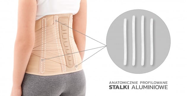 Codzienne stanie, kucanie, podnoszenie ciężarów czy zgięcie powoduje znaczące obciążenie kręgosłupa. Stosowanie ortezy AM-WSP-01 wyposażonej w system anatomicznie wyprofilowanych stalek aluminiowych, pozwala na przeniesienie sił obciążających struktury kręgosłupa na stalki. Dzięki temu, kręgi, więzadła i mięśnie przyjmują na siebie znaczne mniejszy ciężar i nie dochodzi do niekorzystnych zmian w biomechanice dolnych segmentów kręgosłupa.