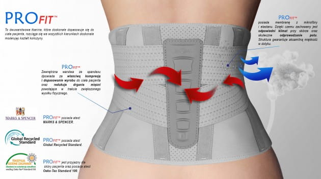ProFit jest to dwuwarstwowa tkanina, która doskonale dopasowuje się do ciała pacjenta, rozciąga się we wszystkich kierunkach doskonale modelując kształt kończyny. Jego zewnętrzna warstwa ze spandexu odpowiada za właściwą kompresję i dopasowanie wyrobu do ciała pacjenta oraz redukuje drganie mięśni powstające w trakcie zwiększonego wysiłku fizycznego. Wewnętrzna membrana z mikrofibry, bawełny i elastanu, odpowiada za utrzymanie właściwego klimatu przy skórze oraz skuteczne odprowadzanie potu, a jej struktura gwarantuje aksamitną miękkość w dotyku. ProFit jest przyjazny dla skóry pacjenta oraz posiada atest Oeko-Tex Standard 100.